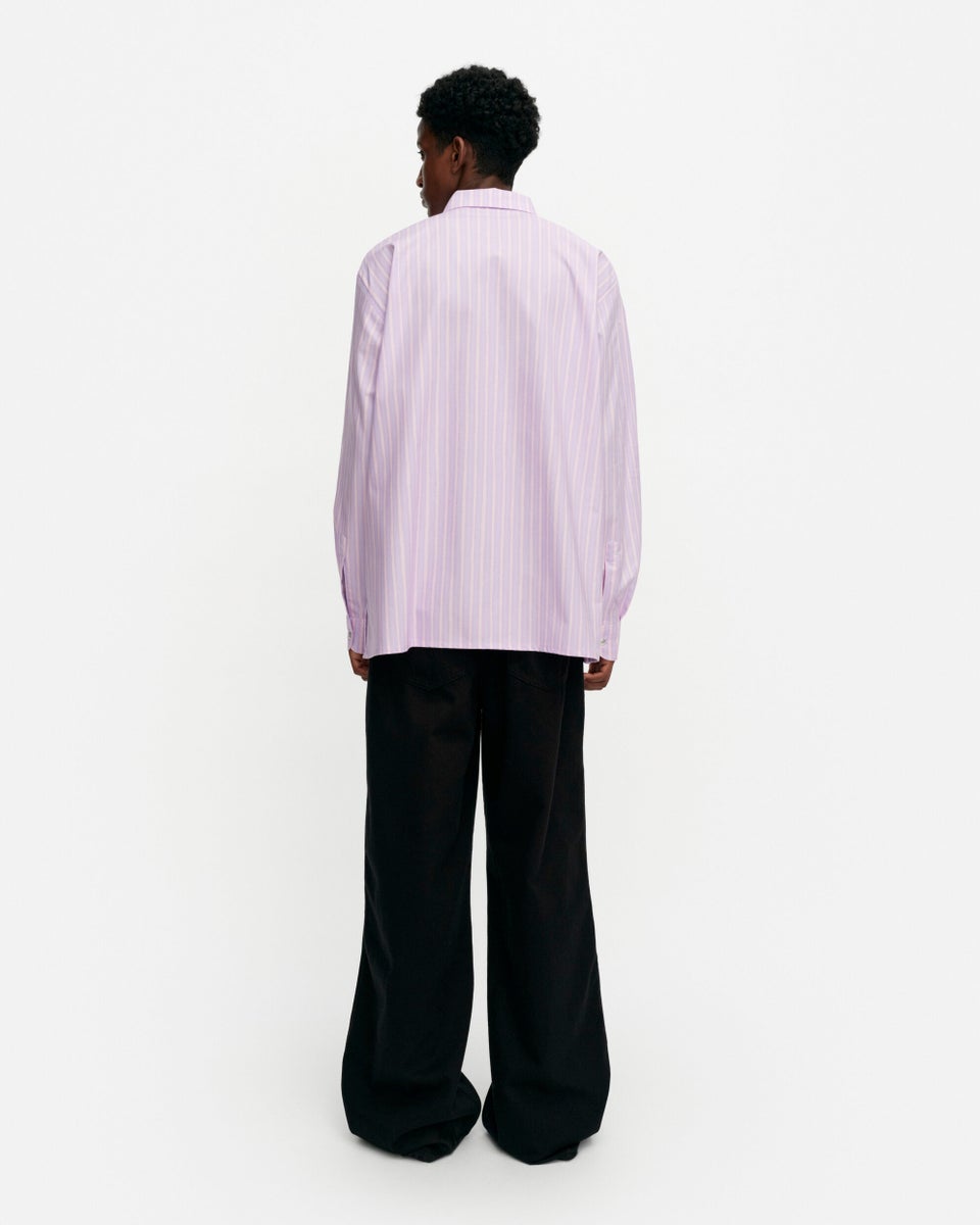 Jokapoika-kauluspaidassa on rento istuvuus, suora leikkaus sekä Piccolo-kuosi, joka on painettu Helsingissä. Paidassa on kaulukset, metallinappisuljenta ja rintatasku. Hihansuissa on halkiot ja mansetit, joissa on metallinapit. Sivusaumoissa on pienet helmahalkiot.